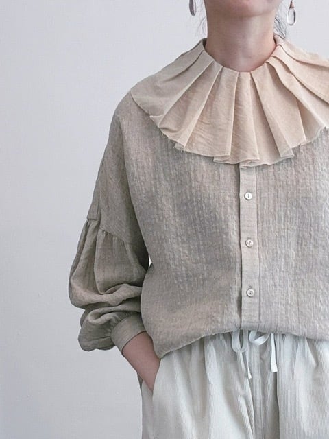 MAGALI/ ストライプリネンアンティークカラーブラウス