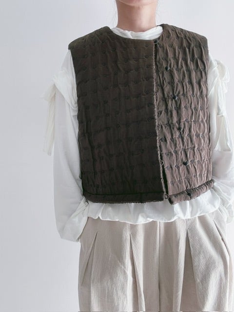 qiri / flower dot quilt jacquard ショートリバーシブルベスト