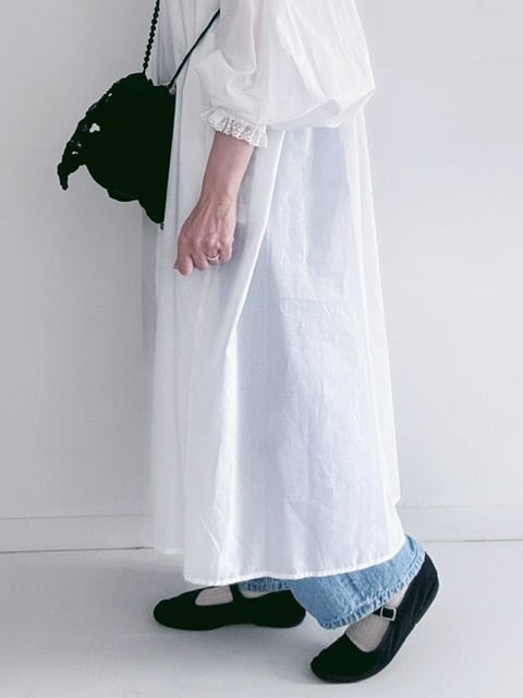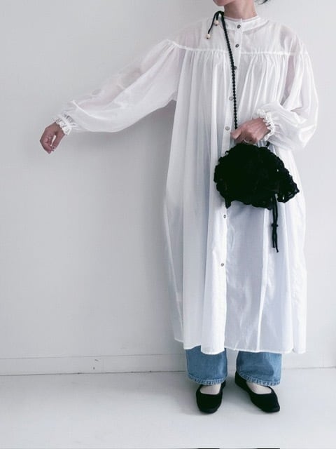 ゆったりした着心地、袖もボリュームたっぷりです。