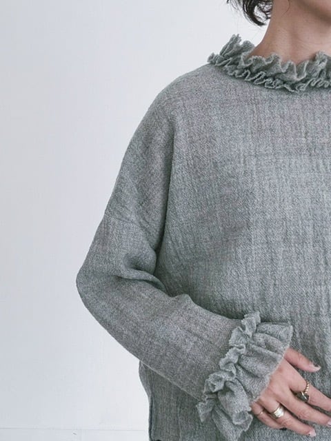 (g) / wool gauze neck frill box pullover