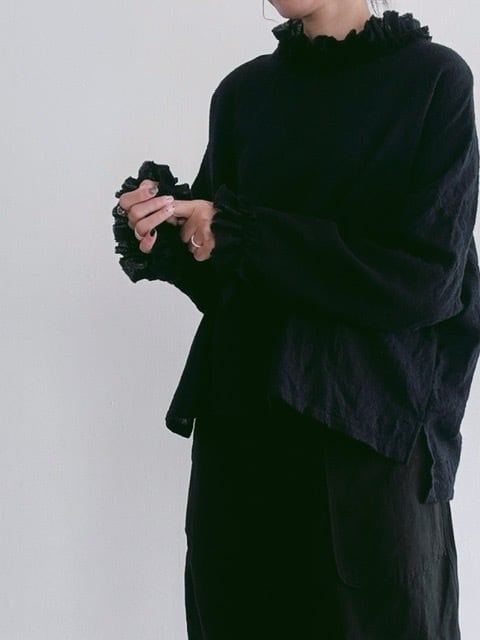 首元と袖口にフリルがあしらわれています。