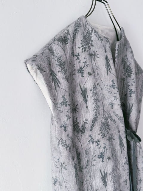 qiri / old letter flowers long gilet /gray