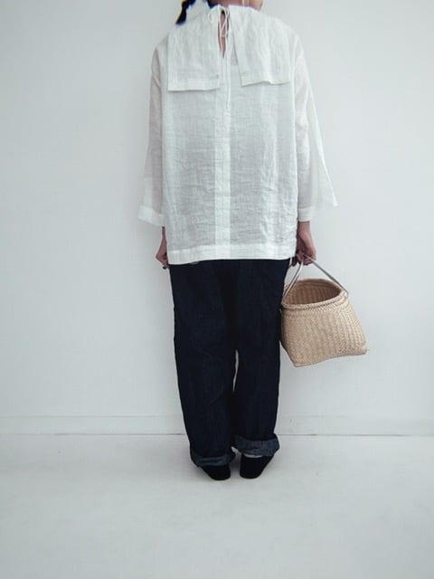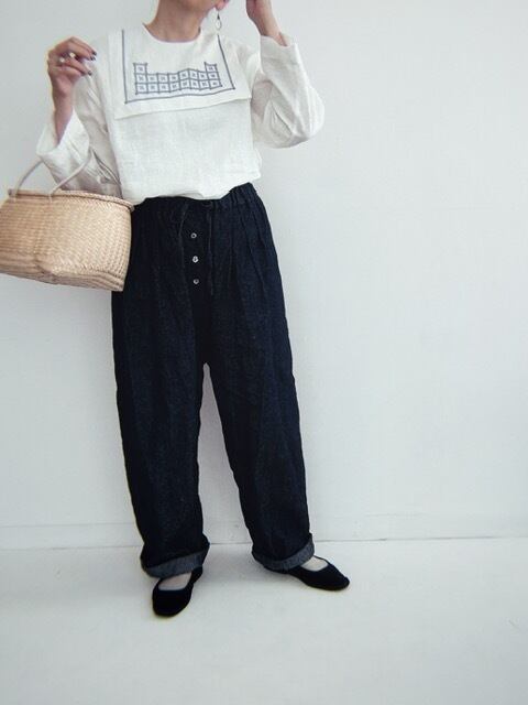 甘くならないセーラーカラーで、デニムとの相性も良く