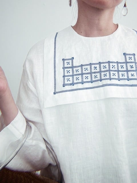 レースや刺繍の透かし模様が施されたブラウス。