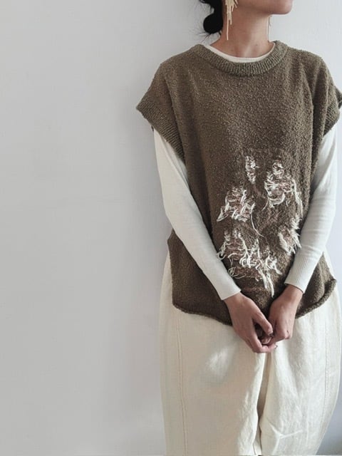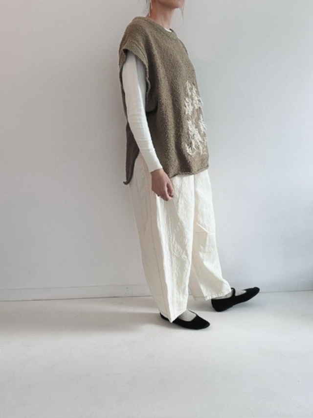 ゆったりとしたコットンのニットベスト。