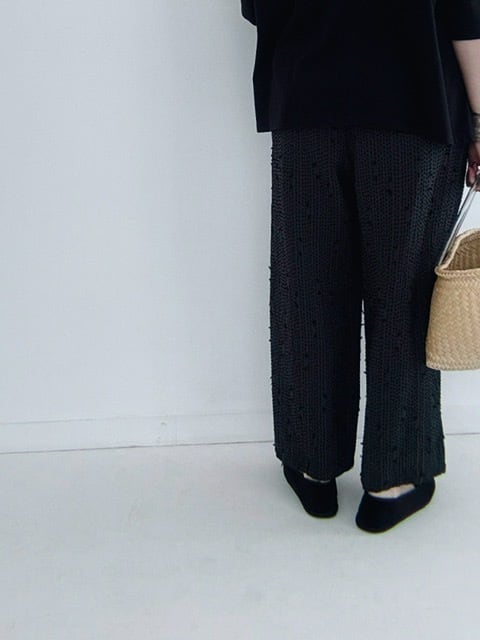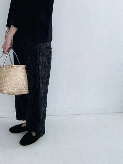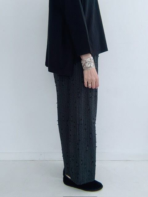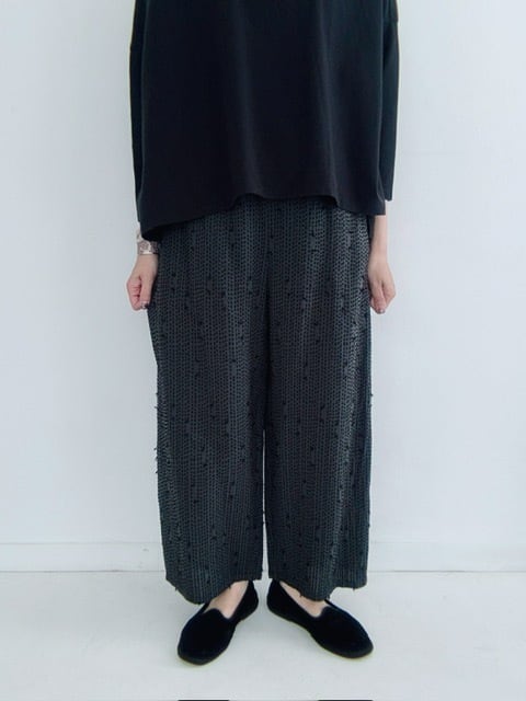 qiri / sashiko jaquard gather wide pants /sumikuro