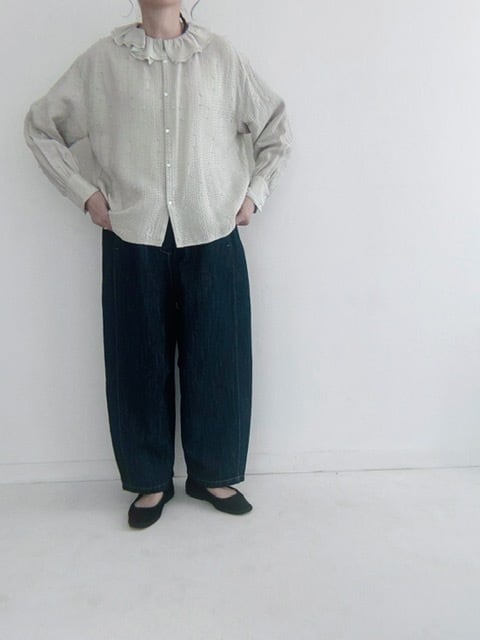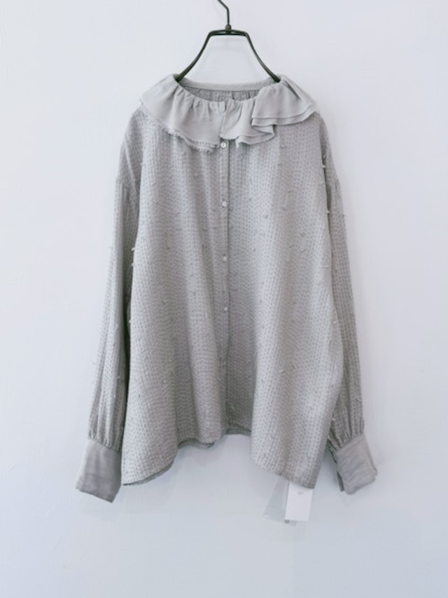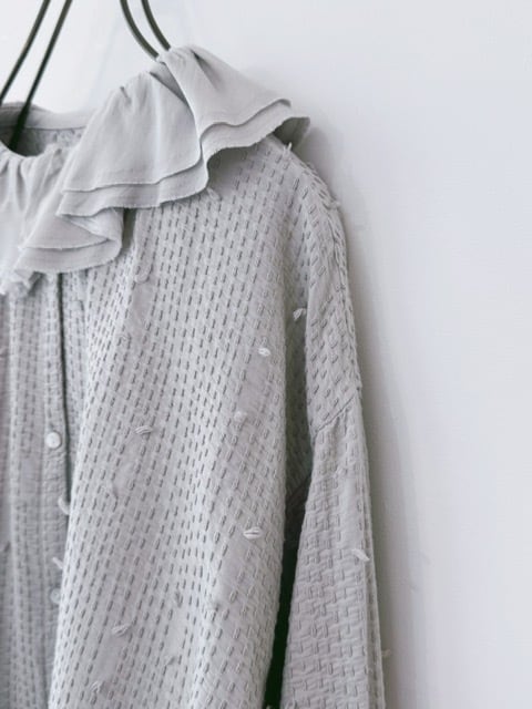 qiri / sashiko jaquard frill collar blouse