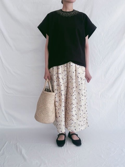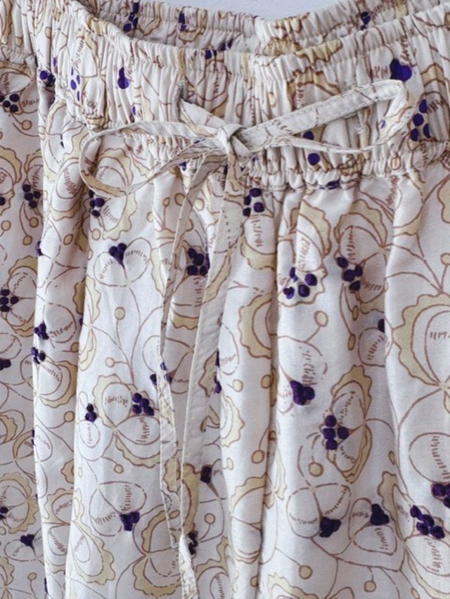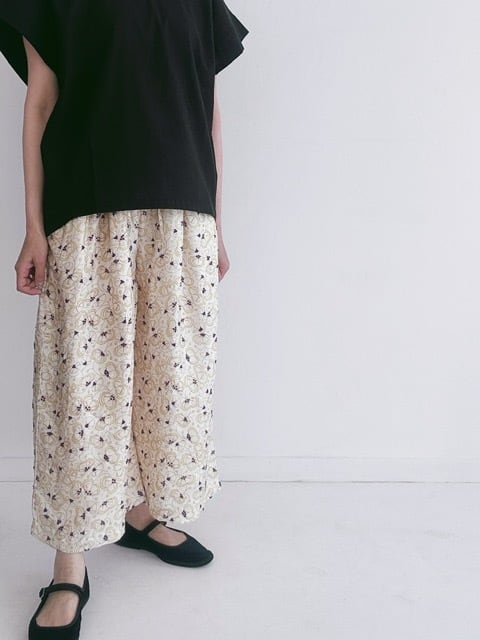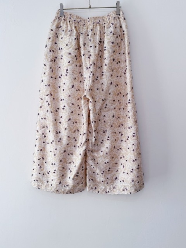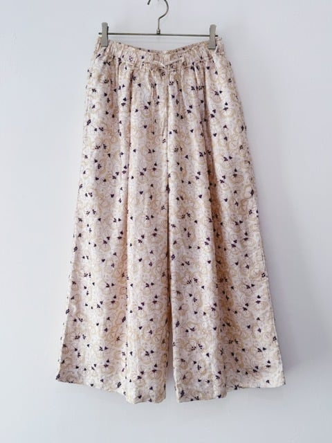 BUNON / khadi silk flower print&Embroidery /Tuck Pants/Dull white