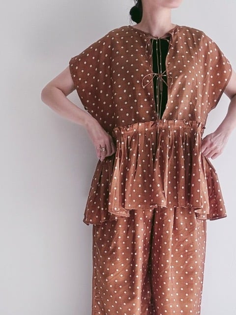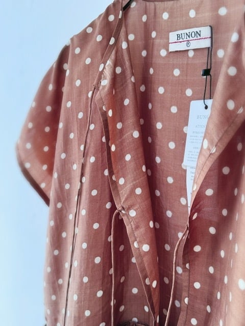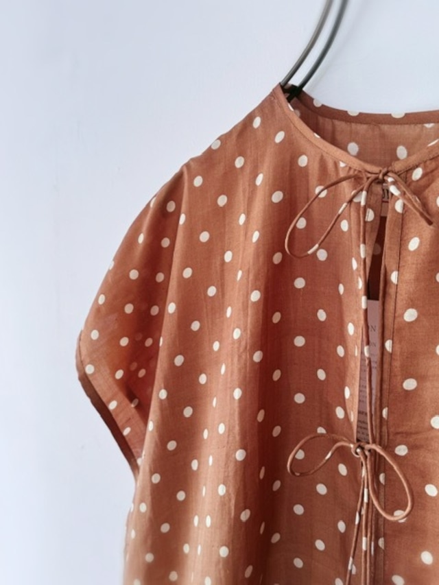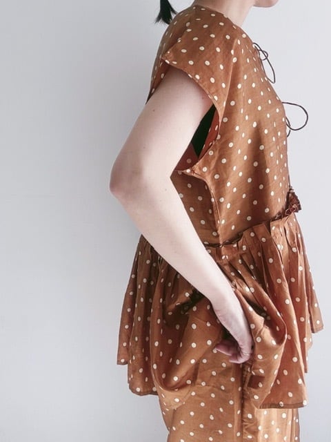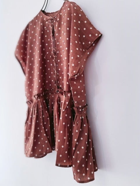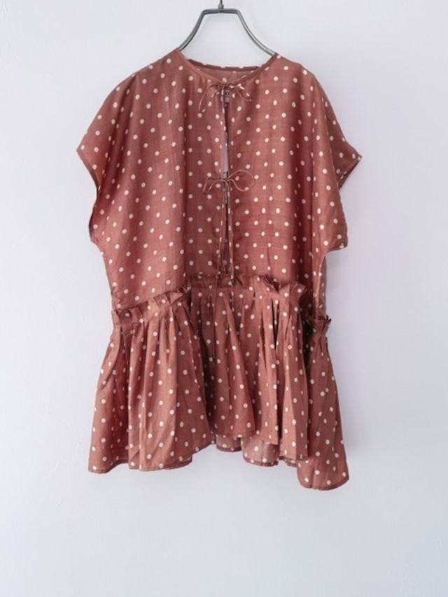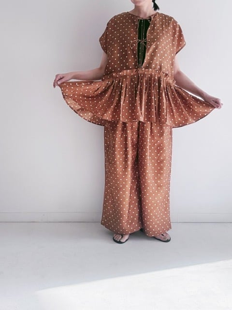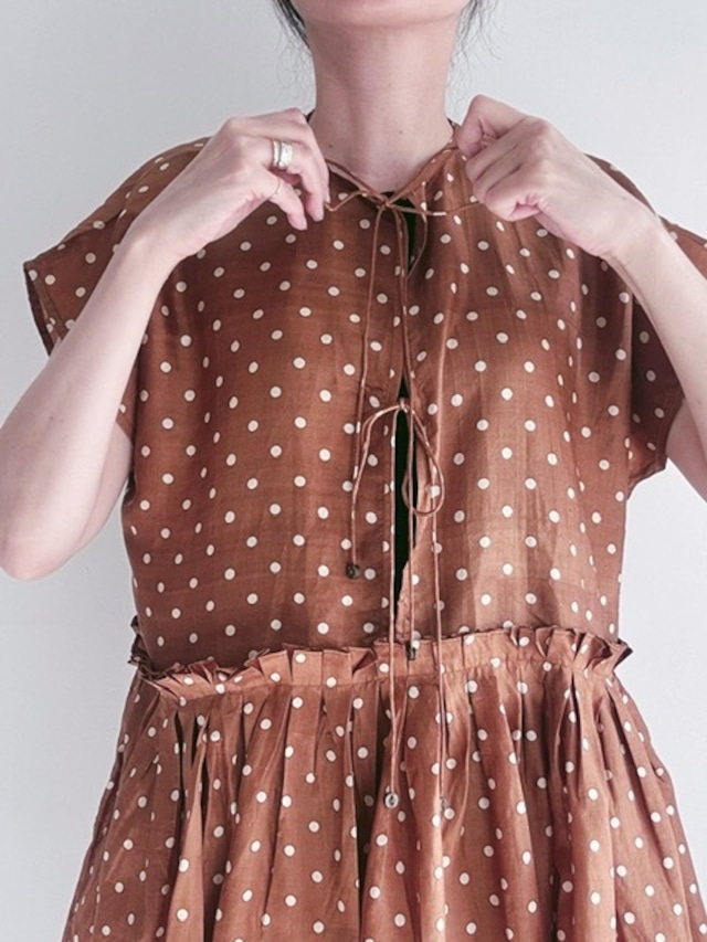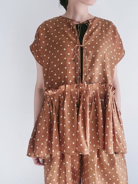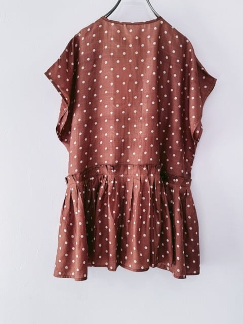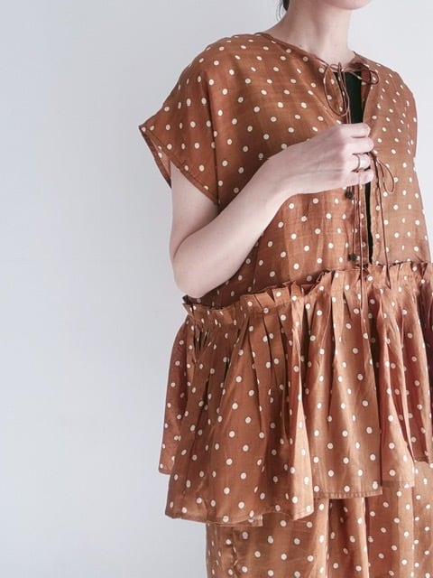 BUNON / khadi silk polka dots print Layered Blouse / Brown