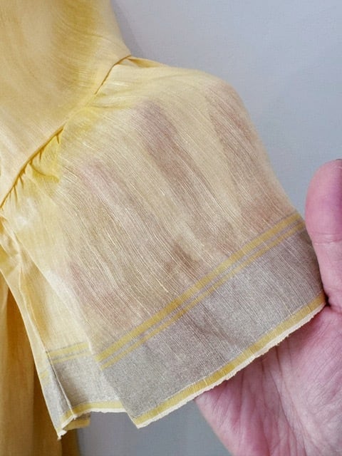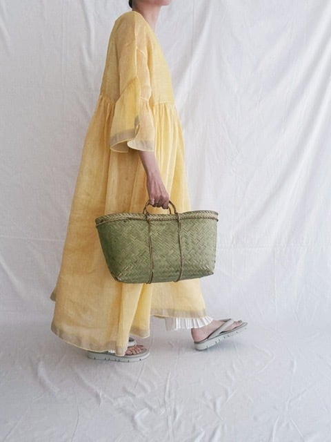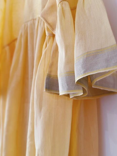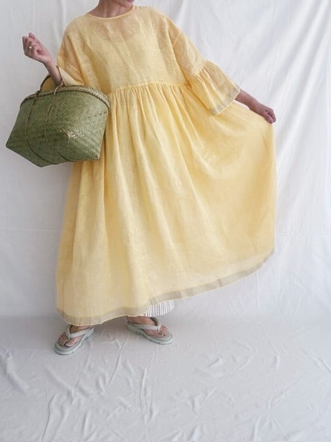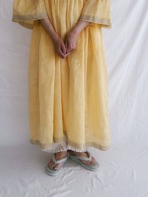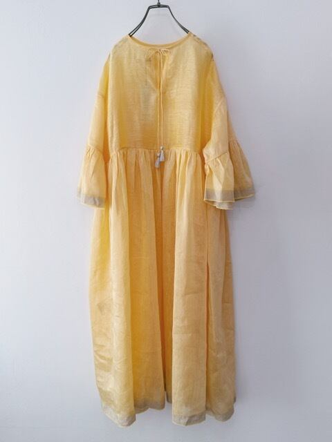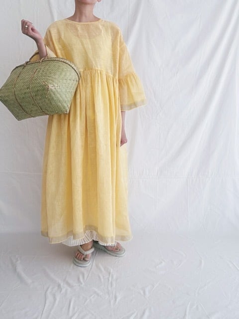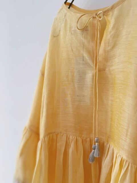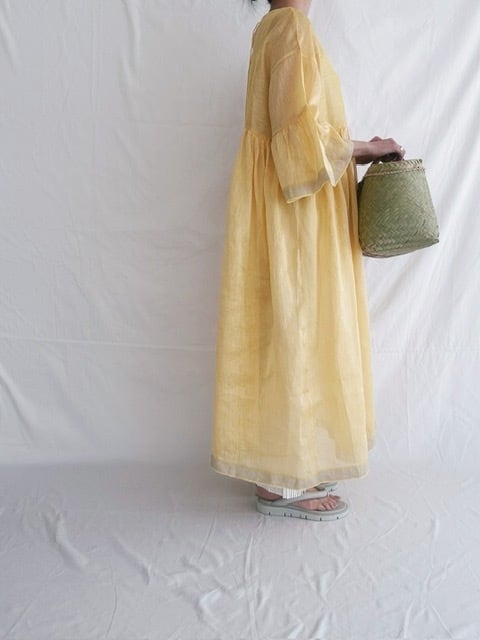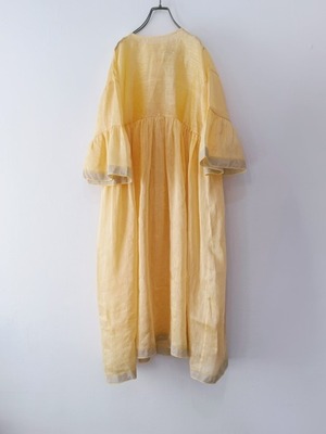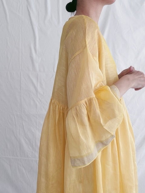 BUNON / khadi Linen Silk wide sleeve frill Dress / custard