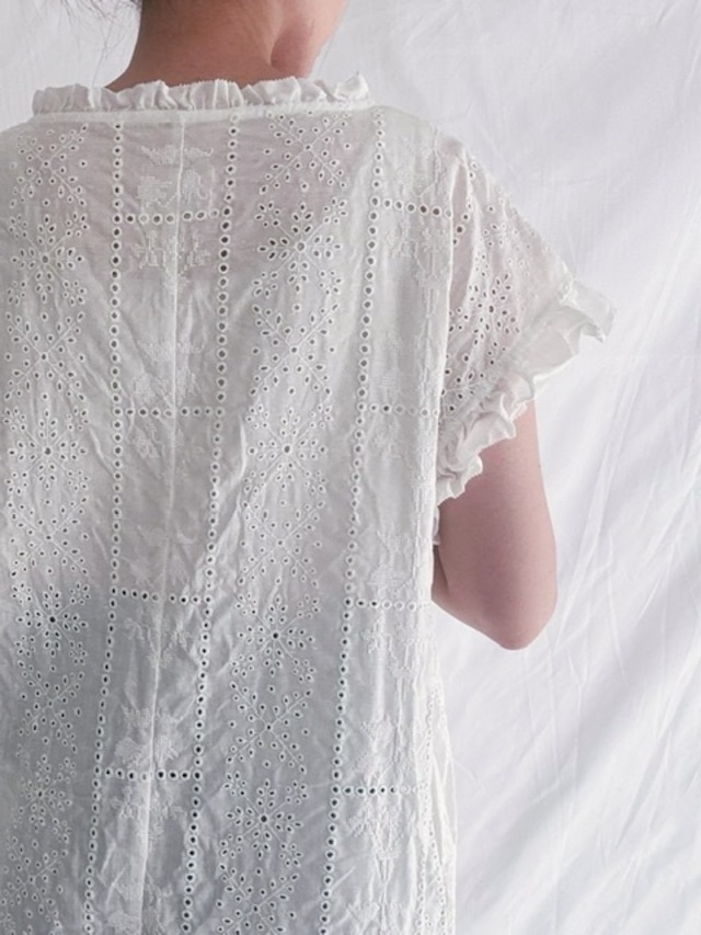 襟ぐりと袖ぐりにフリルを