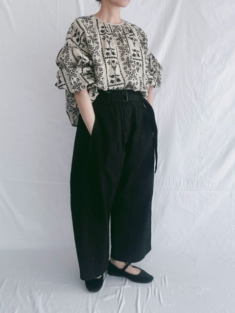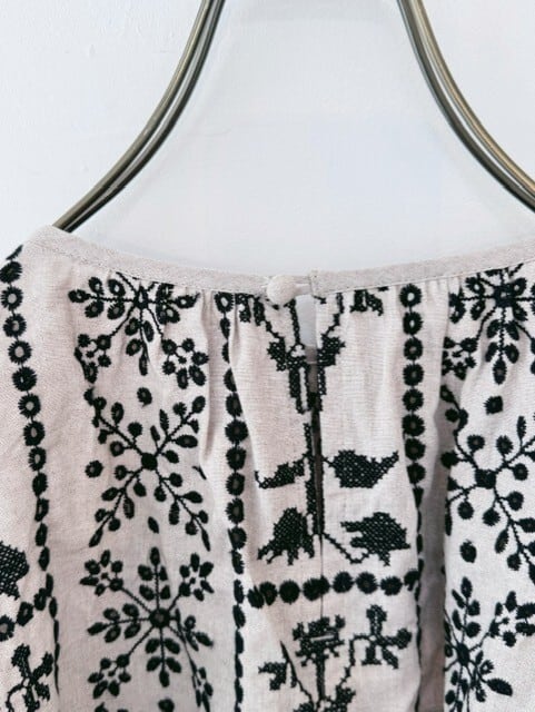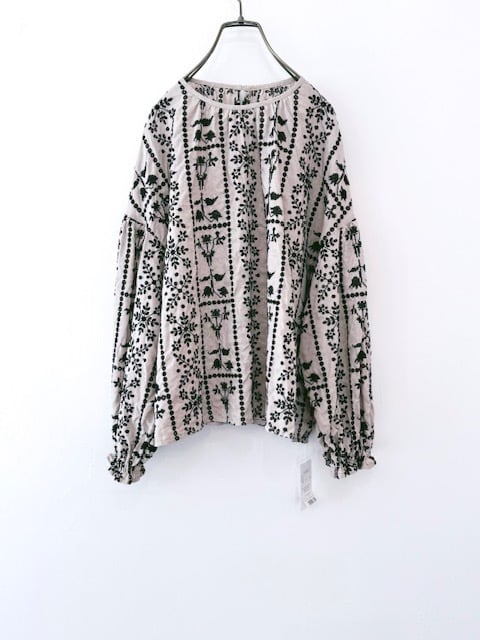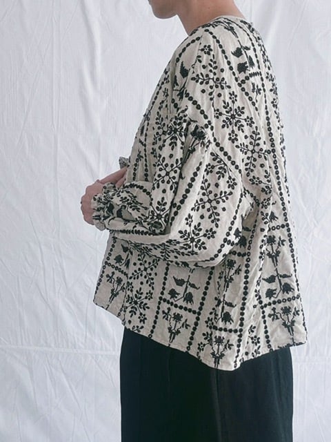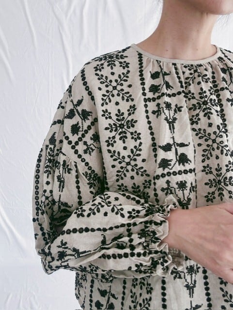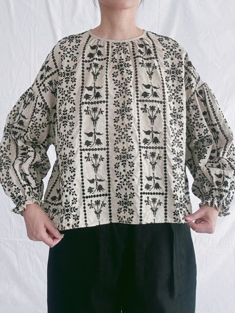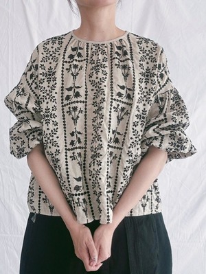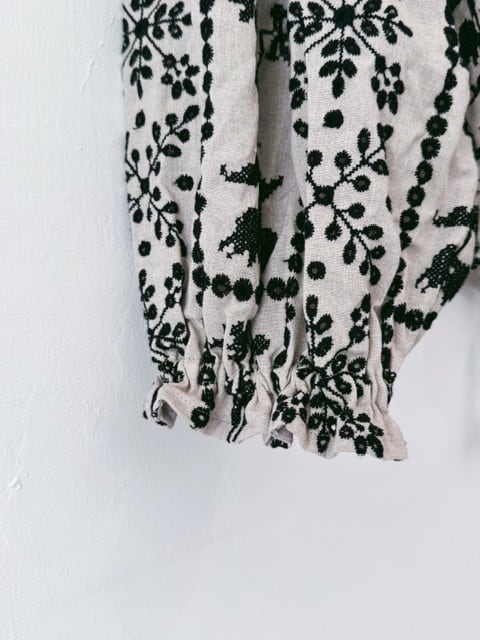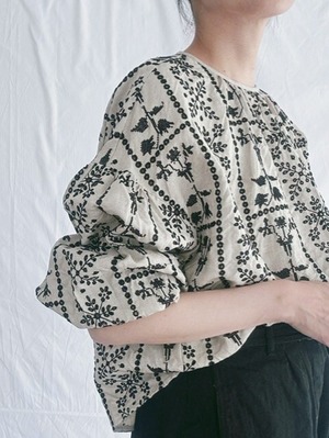 qiri / grow' embroidery gather sleeve blouse
