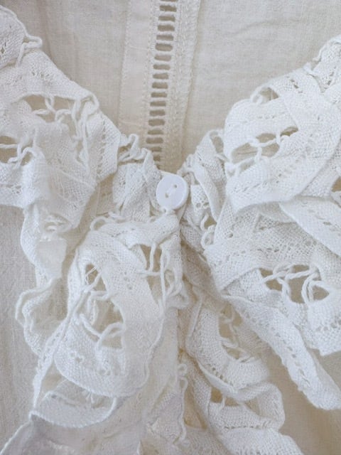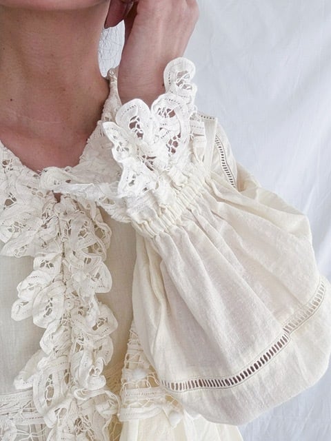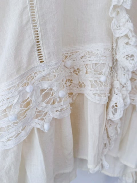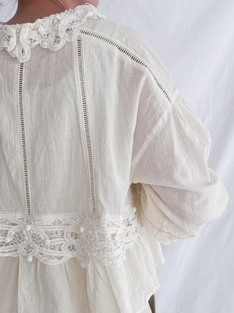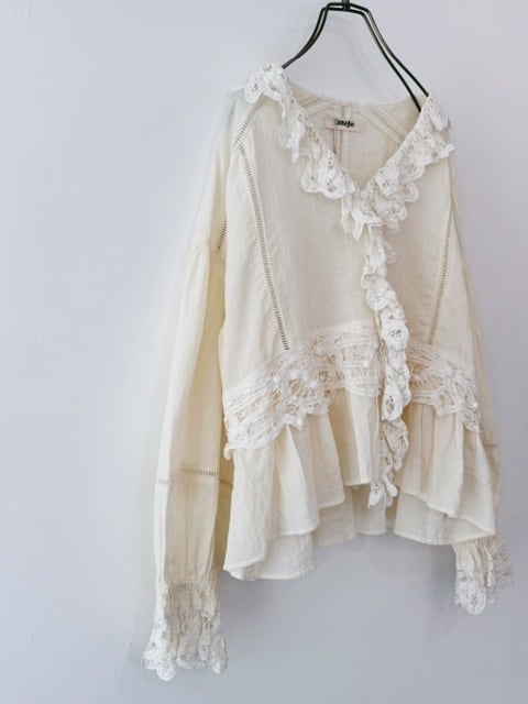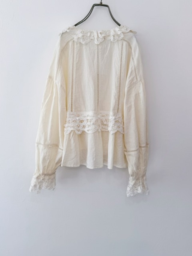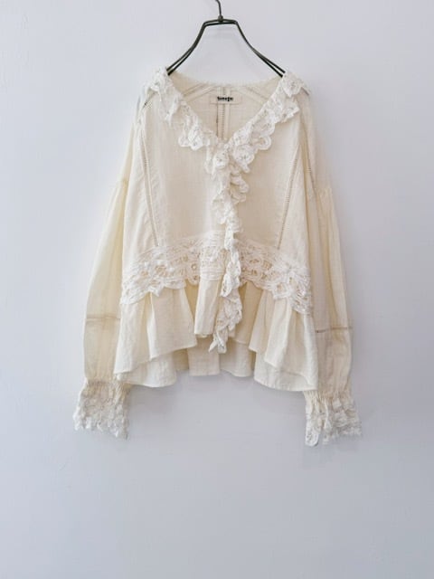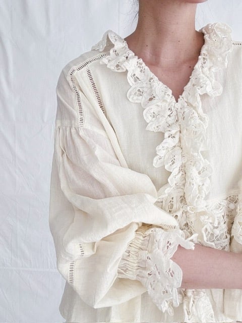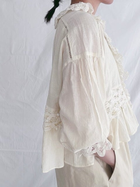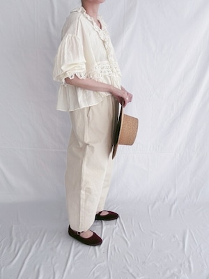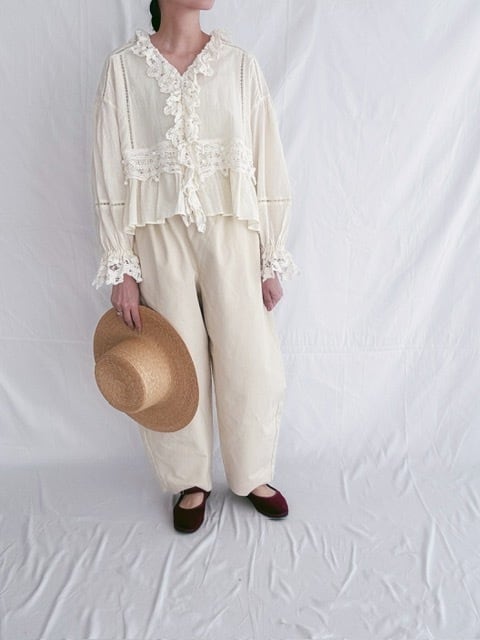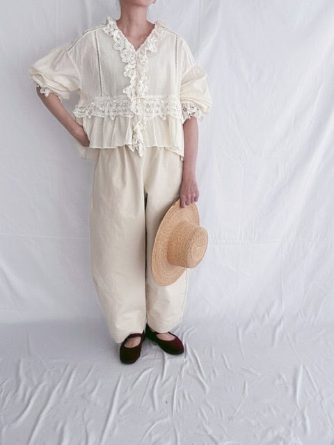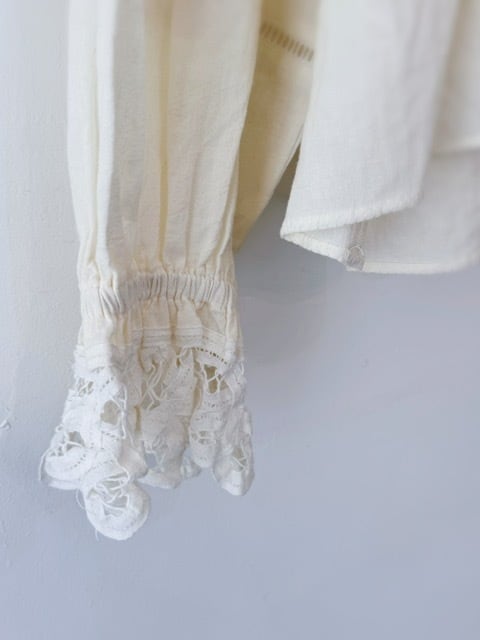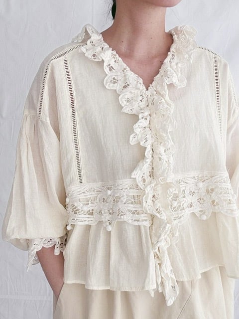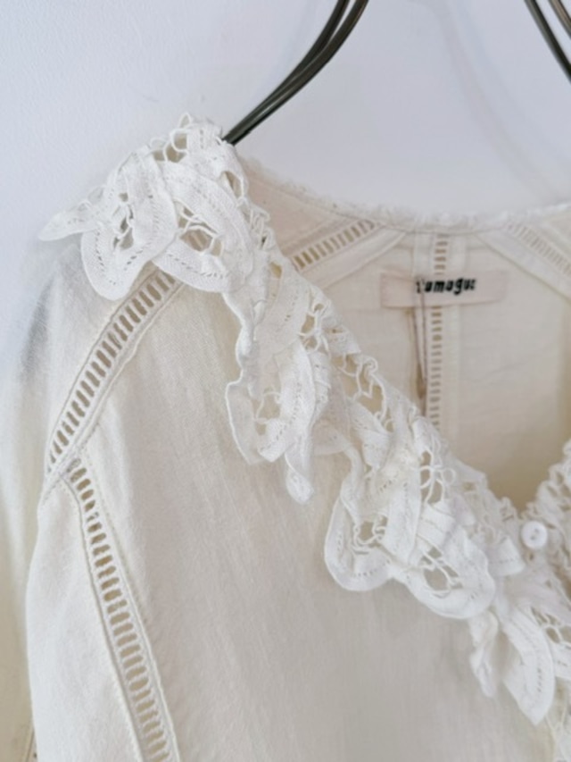 tumugu / コットンリネンキャンバス×バテンレースブラウス