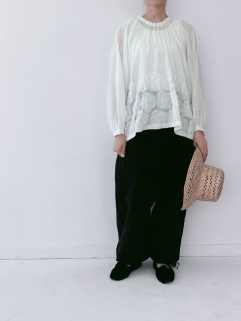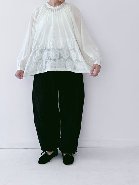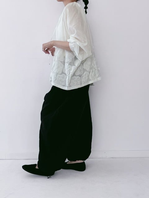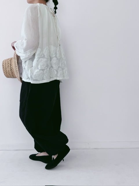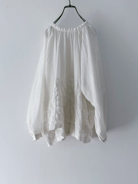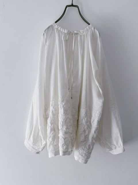 BUNON / khadi cotton silk flower embroidery ribbon blouse
