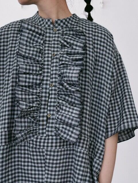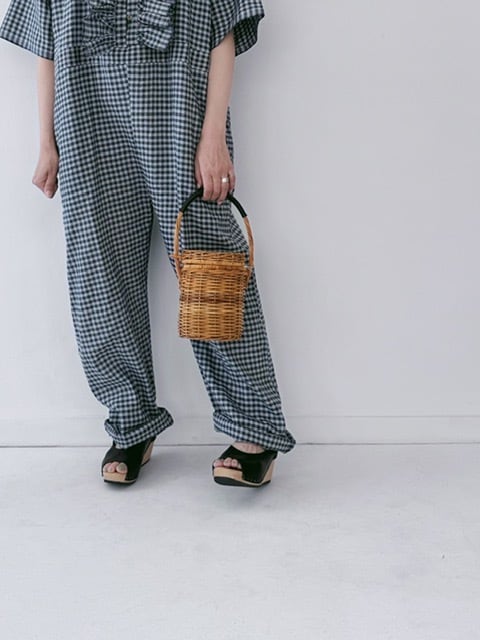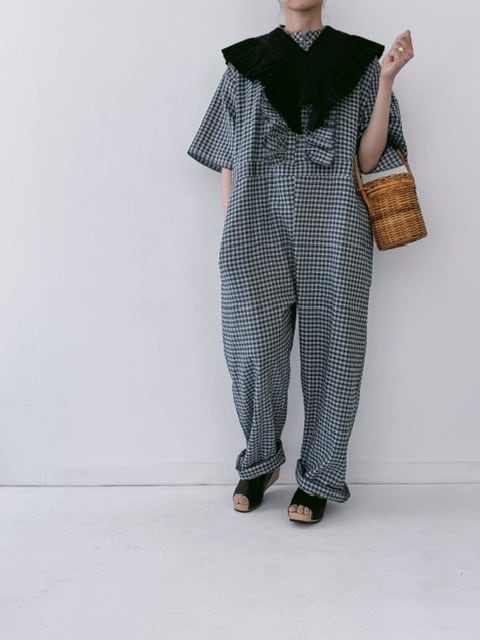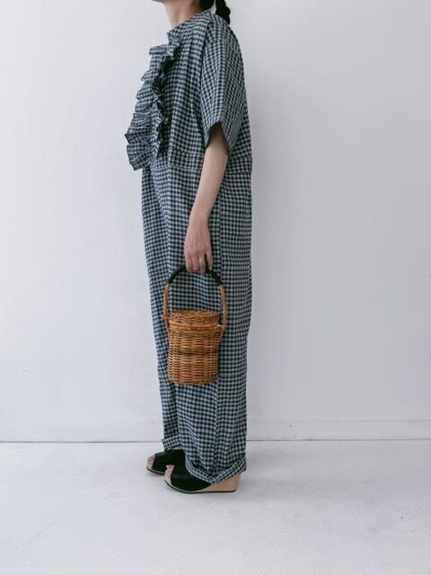BUNON / khadi linen cotton gingham check frill overalls