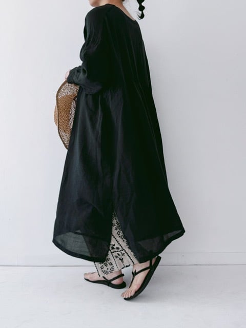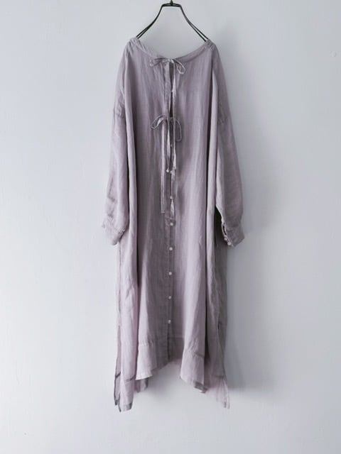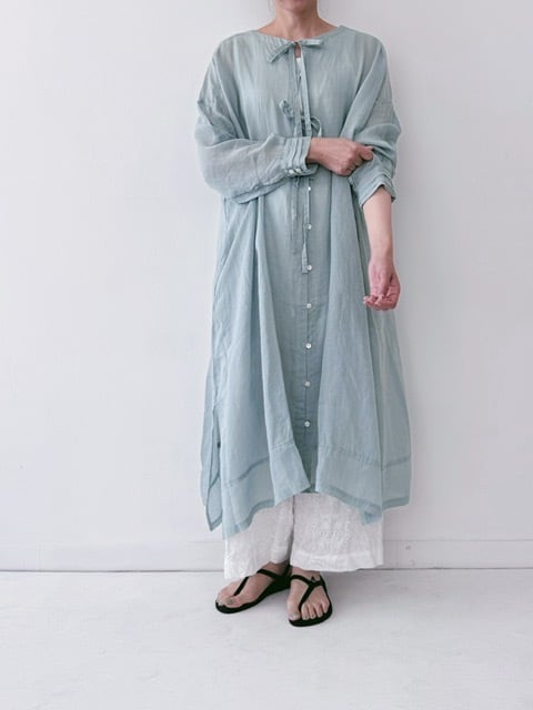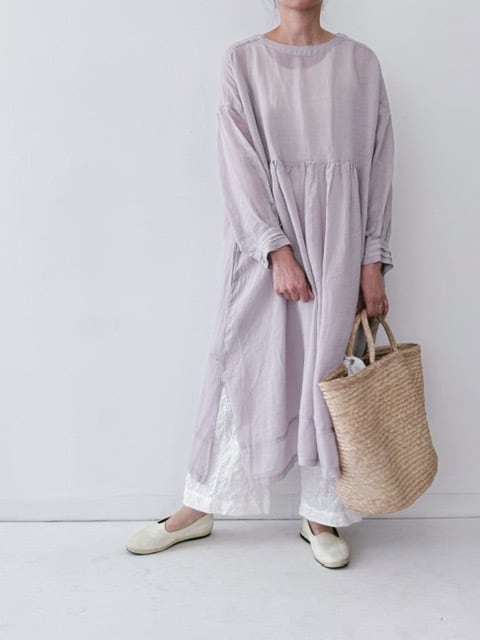 涼やかな透け感のある2wayワンピース。 ラミーのシャリ感とテンセルのほんのり光沢感と とろみが柔らかなドレープを生み きれいなシルエットを作ってくれます。 前後着用可能。 ivory lavender light blue black ラミー55% テンセル45% 身幅約68 アームホール約22.5 裄丈約76 着丈約113 着画身長163
